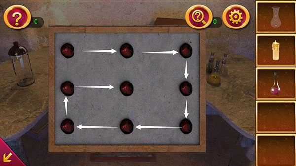 首先在房间角落找到五个带数字标号的杯子与一根玻璃棒,这是本关首个关键解谜点,直接关系后续机关触发。操作时需先选中玻璃棒,再按照5、3、1、4、2的顺序依次敲击对应杯子,每完成一次敲击都要重新点击玻璃棒再进行下一次,不可连续点击杯子,顺序错误会导致机关无响应,需重新开始敲击流程。正确完成敲击后会听到清脆的机关触发声,书架区域的提示灯全部亮起,同时书架层板出现可交互的数字线索,部分书籍背面会显现隐藏数字,需逐一记录并整理排序。