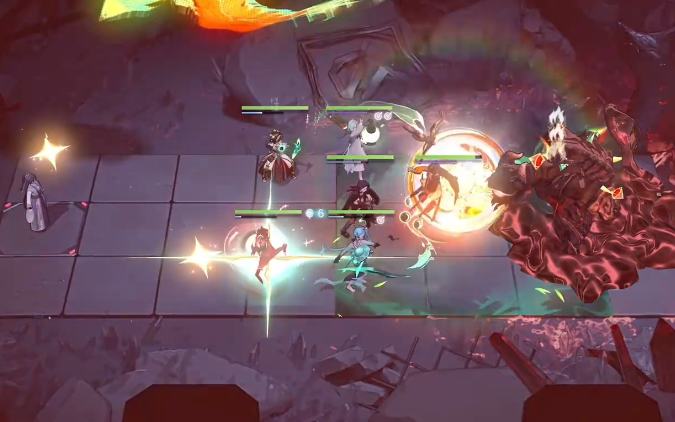 战斗中需重点规避boss九宫格分摊伤害,地面出现红框时,立即将赛托与希格林德拉至安全区域分摊,避免单体承伤导致减员。boss核心破除后会短暂进入虚弱状态,此时快速开满四层背水,奥古斯特连续释放大招,赛托补破剩余核心,源津持续开启增伤技能,最大化输出窗口期。上方与boss后方刷新精英怪时,用奥古斯特专烙与赛托技能快速破核清理,防止小怪干扰输出节奏。残锋层数保持在高位时,奥古斯特大招伤害会持续攀升,全程保持技能循环与破核节奏,即可平稳压制boss血量。