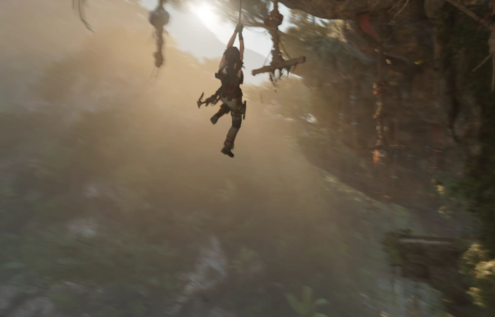 悬崖攀爬和下降是常见的挑战环节,尤其是古墓丽影:暗影中的阴影之中任务。关键在于掌握钩斧和绳索的配合使用。首先从左侧岩壁跳攀并移至底部,在攀爬状态下按下L2或R2键(主机)或鼠标左键/右键(PC),劳拉会用钩斧挂住岩壁并放出绳索。放开按键,用方向键控制下降或上升,此处需让劳拉降至最下方。