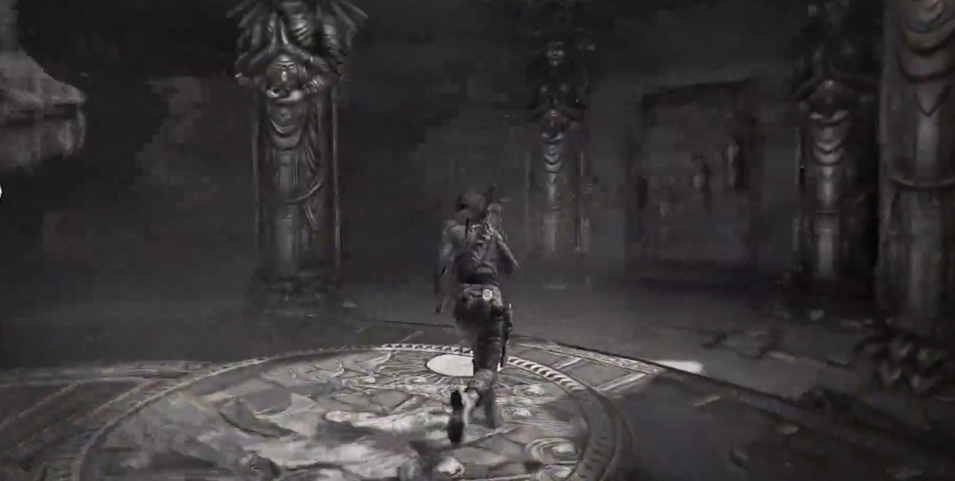 动画结束后沿路下行,解决掉三个挡路的士兵。走到一扇门前狂按互动键撬开,就能进入寺院内部搜寻珊曼莎。这里要注意铁笼解谜环节的节奏,先把笼子升到最高处,在三楼用弓箭拽它砸开对面石壁,接着完全放下笼子,最后回到三楼拉弓跳笼一气呵成。