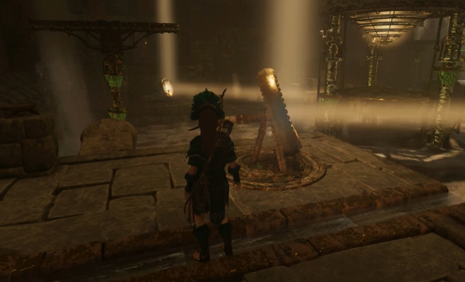 游戏世界中分布着许多挑战古墓,其中的谜题设计比以往更加复杂,需要玩家细致观察环境并灵活运用工具。在太阳神庙的古墓中,玩家需要操作多面镜子反射阳光,通过调整镜面角度将光线依次导向特定的柱子,以激活机关并降低平台。