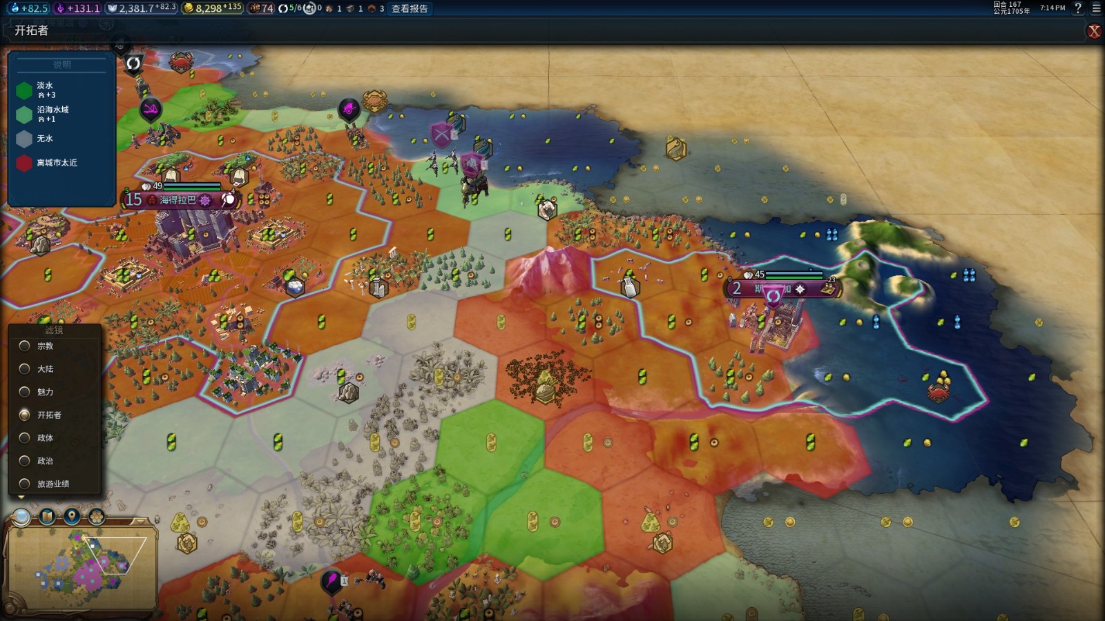 城市布局与区域建造要围绕剧院广场核心展开,每个核心城市必建剧院广场,优先升级剧场、博物馆、广播中心,邻接奇观、山脉、河流能提升文化与旅游加成,同时搭配圣地产出遗物、国家公园提升魅力与旅游业绩,国家公园需3个相邻魅力≥9的地块,建成后每回合提供稳定旅游业绩,是后期重要来源。巨作是旅游业绩的核心载体,艺术、文物、音乐、遗物要严格按主题摆放,艺术博物馆凑同主题3件、考古博物馆凑同文明或同时期文物,主题化后旅游业绩直接翻倍,前期抢大艺术家、大作家、大音乐家,快速填满博物馆槽位,解锁印刷术后巨作产出效率进一步提升,为后期旅游爆发打基础。奇观选择优先神谕、大图书馆、阿帕达纳宫、紫禁城,神谕加伟人点数,大图书馆补巨作槽位,紫禁城提供高额文化与旅游,奇观建成后随时代提升旅游业绩,是稳定的旅游业绩来源。